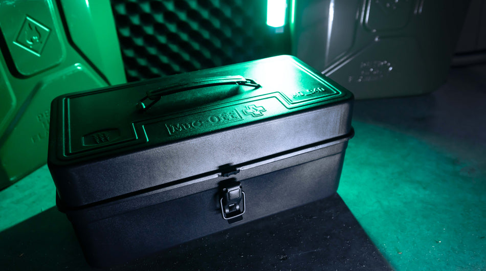 Your Muc-Off haul comes securely wrapped up in our military inspired, eco conscious utility toolbox complete with a pack of badass Muc-Off stickers to customise your kit. Stash all your MO goodies, tools, and spare parts all in one place. Thanks to the large singe compartment, secure locking system, and grab handle, on-the-go bike care and maintenance has never been so easy or looked so awesome.