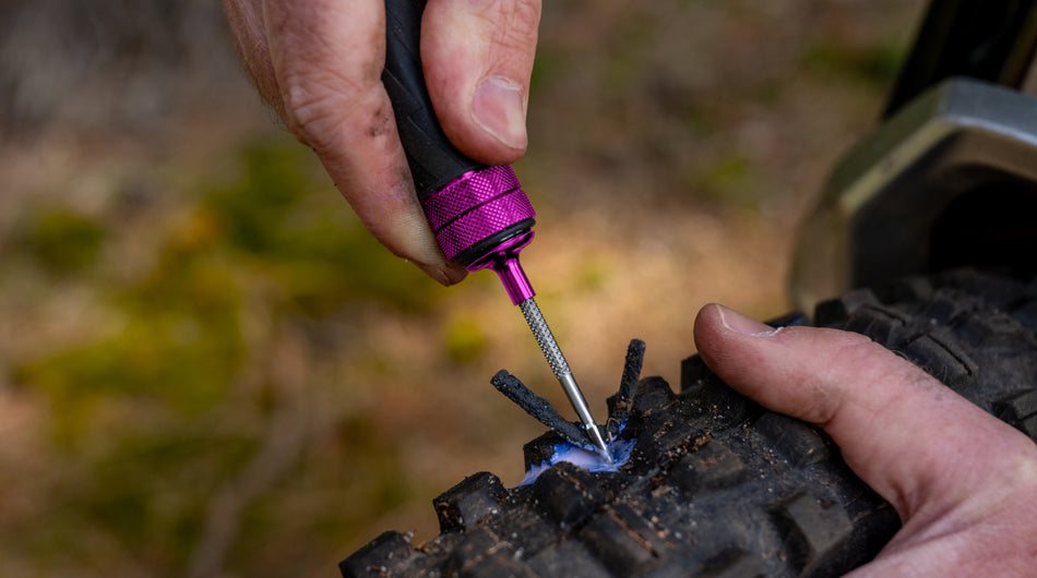 2. If the puncture requires the medium or larger worms then ream the hole several times with the knurled area of the tool, make sure you use a 45-degree angle and follow the direction of the tyre to ensure you don’t damage your tubeless tape or the tyre wall!