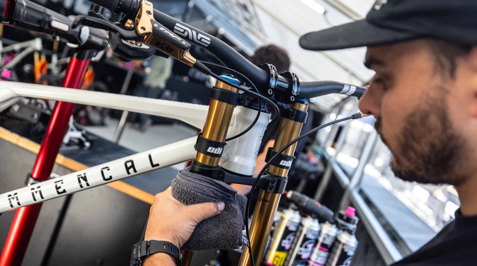 3. After cleaning, wipe down fork, shock, and/or dropper post with microfibre cloth and remove any excess water. Do not use in direct sunlight.