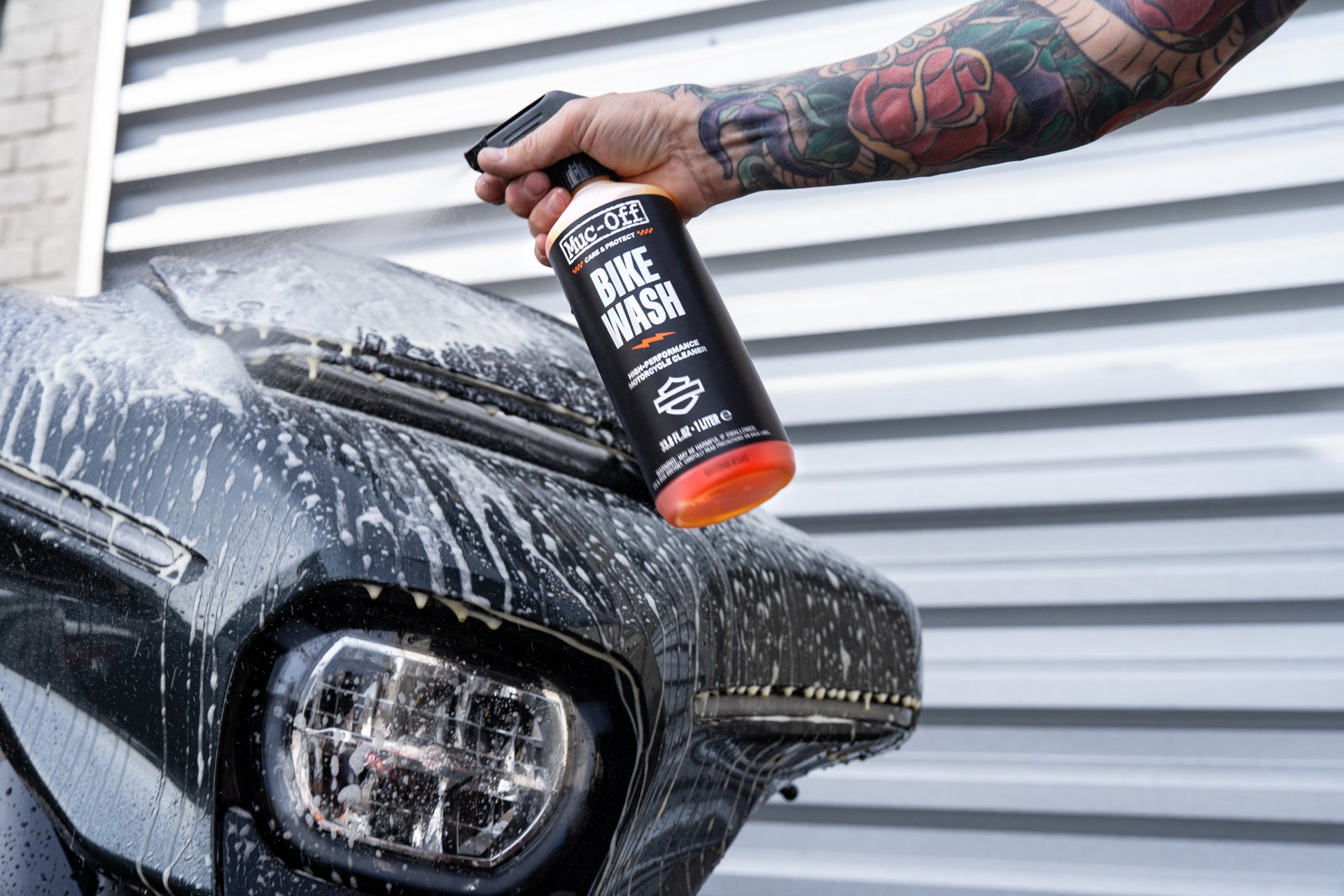Designed for riders who take pride in their Harley-Davidson®, Bike Wash lifts dirt, oil and road grime at a microscopic level, allowing it to be rinsed away fast—without scratching your ride. Powered by our famous Muc-Off Nano Tech formula, it delivers serious cleaning power while protecting your ride’s premium finish.