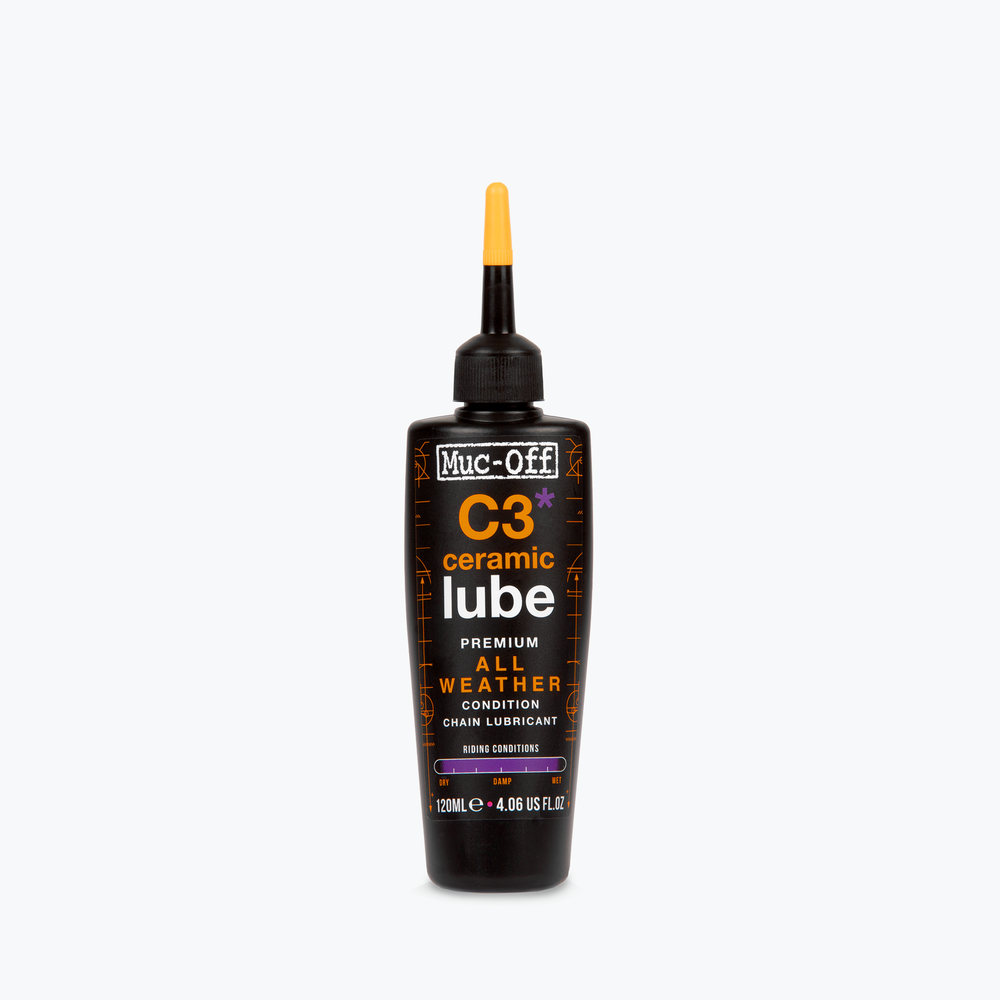 The Muc-Off C3 All Weather Chain Lube is a high-performance synthetic lubricant infused with Boron Nitride additives.  The unique water repellent, non-fling formula penetrates deep into the chain link, to create a durable protective coating which guards against corrosion and metal-to-metal contact which reduces wear resulting in a longer lasting drivetrain.  A blend of extreme pressure additives ensures the lube can stand up to even the toughest of rides.  Muc-Off's formula provides lubrication for long-distance, on & off-road riding in all conditions.